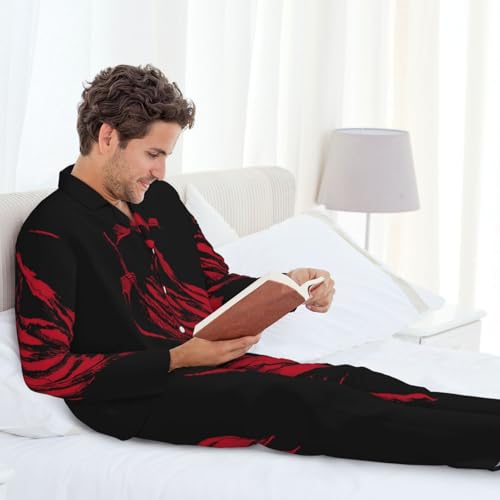 Red Grim Reaper Mens Pajamas Set Button Down Sleepwear Set Long Sleeve Loungewear With Pockets 5