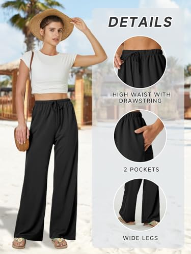 keriffe Summer Outfits Flowy Palazzo Pants for Women 2025 High Waisted Wide Leg Beach Casual Vacation Pants Trousers Pockets