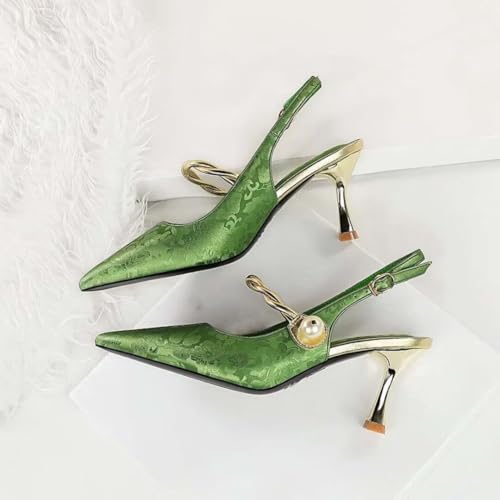 JOEupin Women's Slingback Mid Heels Closed Pointed Toe Wedding Party Dress Evening Pumps Shoes 6