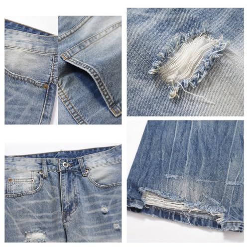 Men's Denim Flared Pants Mid-Rise Loose Casual Straight Cut Gradient Ripped Streetwear Jeans with Pockets 6