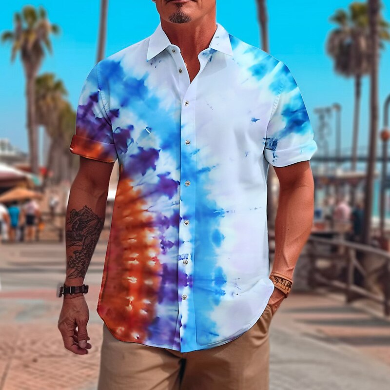 More information about Men's Tie Dye Shirt Button Up Shirt Short Sleeve Fashion Designer Casual Outdoor Casual Holiday Summer Spring Turndown Print Button-Down Yellow Blue Green Rainbow