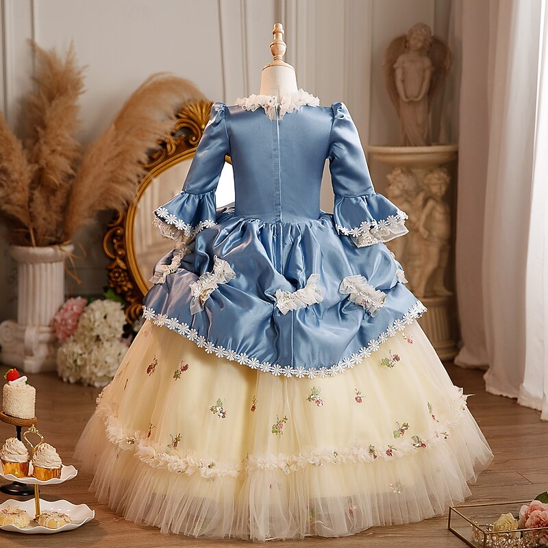 Rococo Princess Maxi Prom Dress Bell Sleeve Princess Belle Bow Retro Ball Gown Point Fancy Dress Girls' Royal Christmas Halloween Carnival Masquerade Wedding Party Festival Kid's Child's Dress All 3