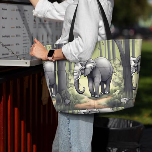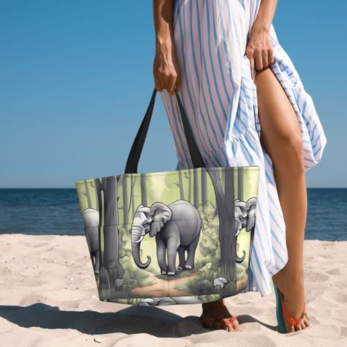 Walking elephant Large Capacity Beach Travel Bag, Foldable Beach Bag with Zipper, Great for Grocery Bag Pool Gym Travel Shopping 7
