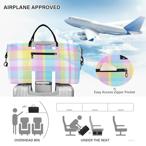 HOT ! susiyo Travel Duffel Bags Easter Pastel Colored Checkered Quilted Gym Bag Weekender Overnight Bags with Small Makeup Pouch