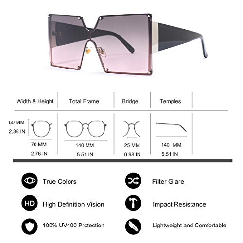 • 100% UV400 Protection -- Flat lens for this oversized rimless sunglasses can be against harmful sun rays out of hurting eyes and reduce glare.