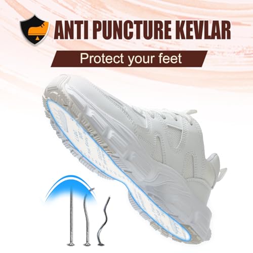 • 【Puncture Resistant Kevlar Midsole】Our safety trainers are designed with a puncture resistant kevlar midsole with 1100N of puncture resistance. The lightweight Kevlar midsole protects your feet from sharp objects piercing the sole.