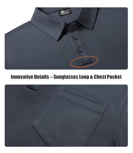 • FEATURES: This polo shirt is equipped with a chest pocket, providing handy storage for small items. Additionally, it features a eyeglass loop that can also hold a pen, adding convenience for everyday use and outdoor adventures. The shirt is designed with split hem for ease of movement. Classic 3-button placket. The collar is designed to resist curling, maintaining a polished look.