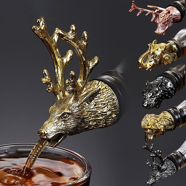 Wine Liquor Spirit Pourer Animal Head Stainless Steel Unique Bottle Stoppers Aerators Bar Tools 5