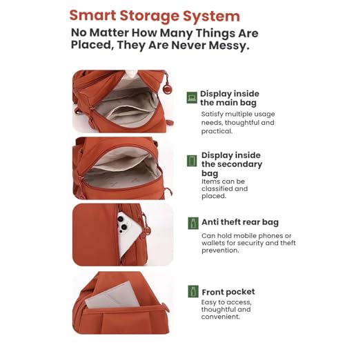 • Spacious & Organized Storage: Features multiple compartments, anti-theft hidden pockets, and functional dividers to keep belongings neatly arranged and secure