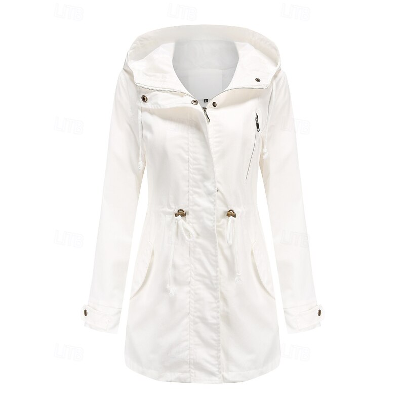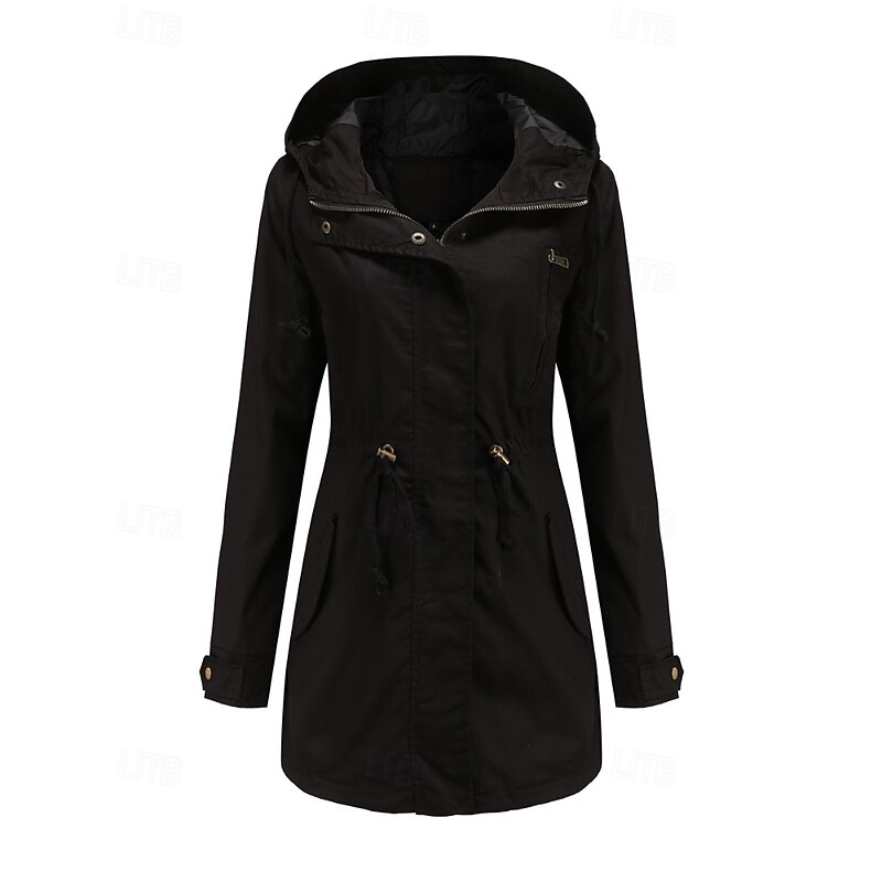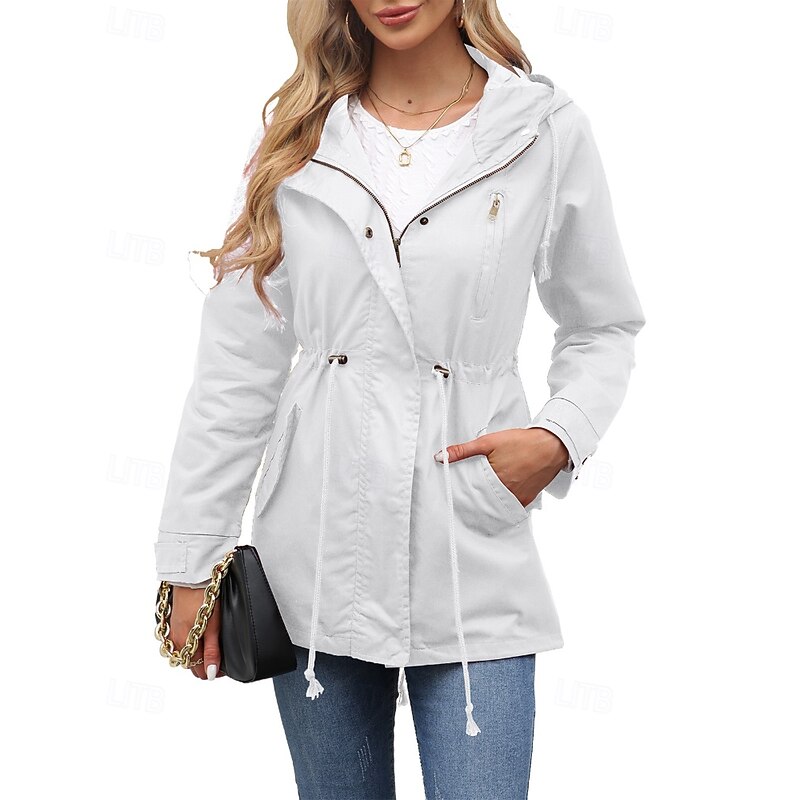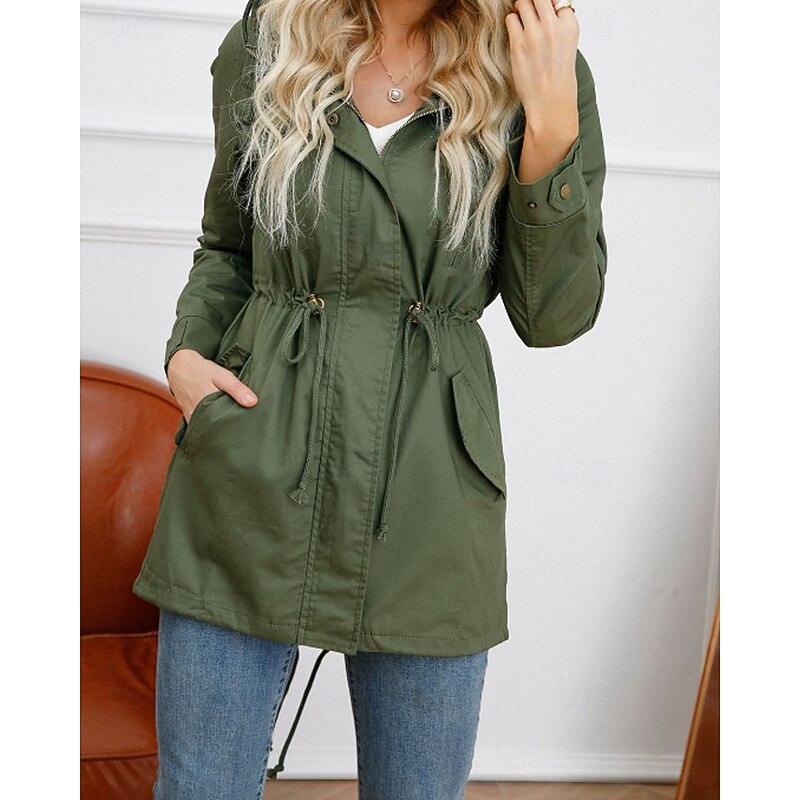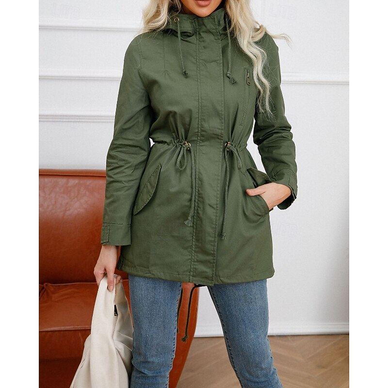 More information about Women's Trench Coat Warm Comfortable Zipper Pocket Fashion Outdoor Plain Going out Weekend Zipper Regular Hooded Regular Fit Long Sleeve Outerwear Black White Army Green Fall Winter