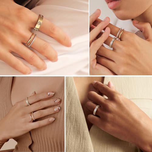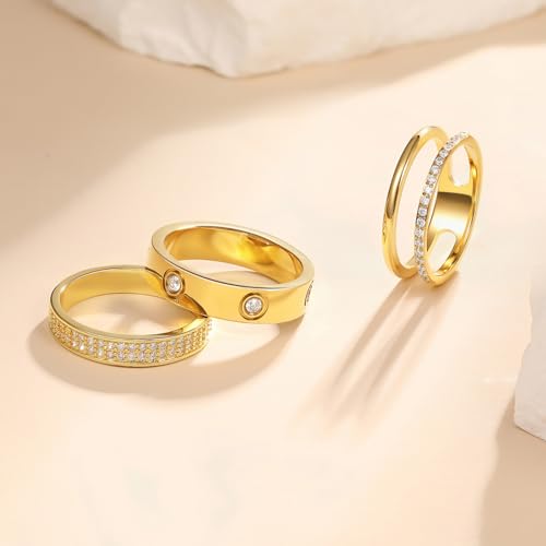 • Gold Rings For Women: One order includes 3 pcs different style stackable rings, Cubic Zirconia ring, promise band ring, stacking ring. Each love band rings contains unique diamond elements, which are very shiny and fashion-designed. So cute, simple, trendy and dainty. Make you more elegant and sophisticated.