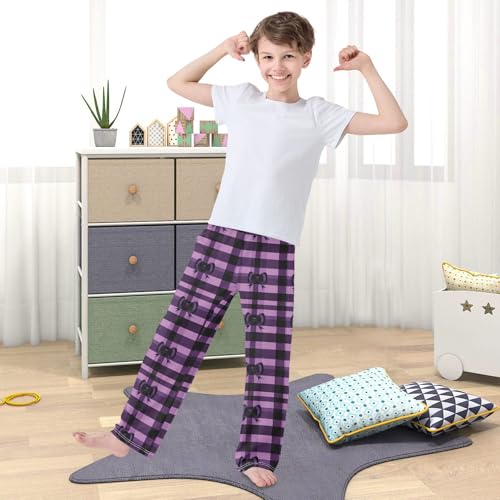 Pajama Bottoms, Purple Checkered with Bow Sleeping Pant Lounge Wear Elastic Waist Long Pants Sleepwear Pjs 1
