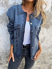 More information about Women's Denim Jacket Outdoor Street Daily Wear Fall Winter Regular Coat Regular Fit Thermal Warm Breathable Stylish Casual Jacket Long Sleeve Solid Color with Pockets Black Blue Khaki