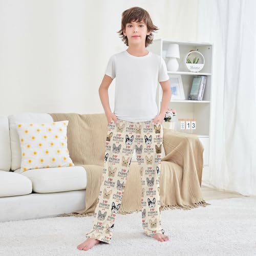 I Love French Bulldog Boys Long Pants Soft Trousers Elastic Waist Kids Lounge Bottoms with Pockets S-XL 4