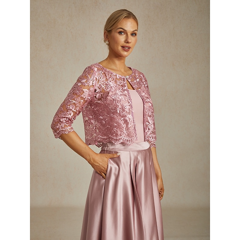 More information about Women's Lace Tops Jacket Floral Elegant Party Crew Neck Crop Tops Wedding Guest Party Evening Wear Lace Embroidered Blush Pink Summer Spring Fall