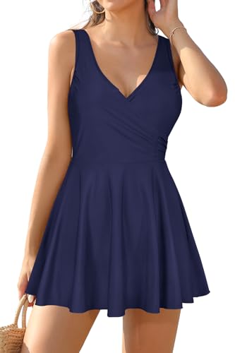 One Piece V Neck Skirt for Women Modest Tummy Control Swimdress Bathing Suits Swimsuit 5