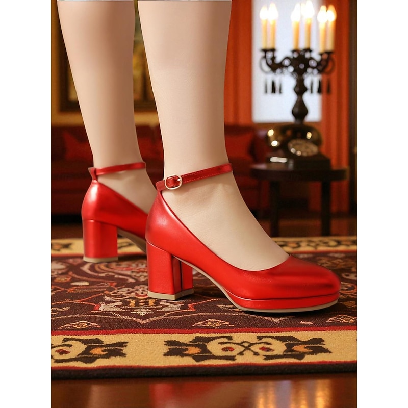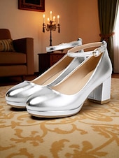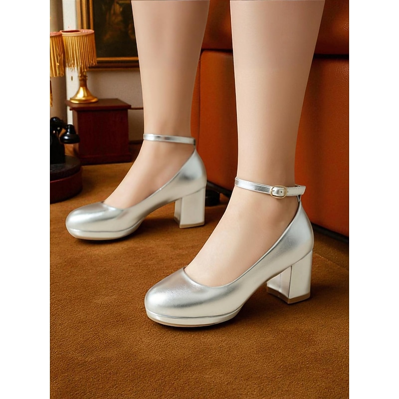 Highlights - Made with high-quality PU upper materials for durability and style - Synthetic leather lining for a comfortable fit - Features a sleek buckle embellishment for added flair - Chunky heel adds height and stability - Round toe shape for a classic look - Rubber outsole for traction and durability.