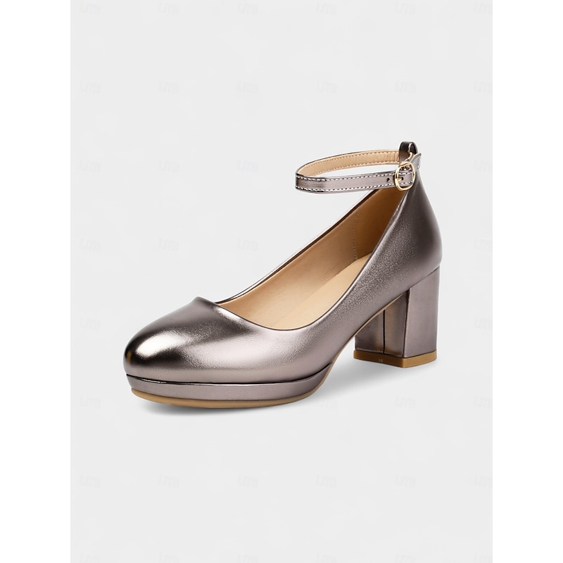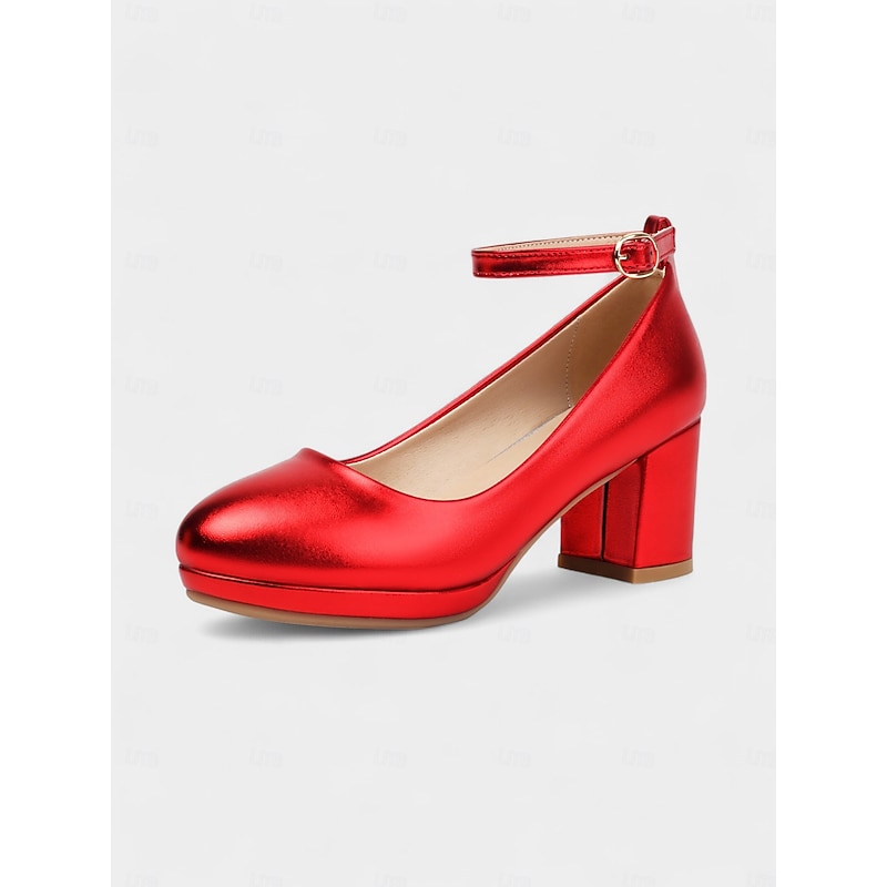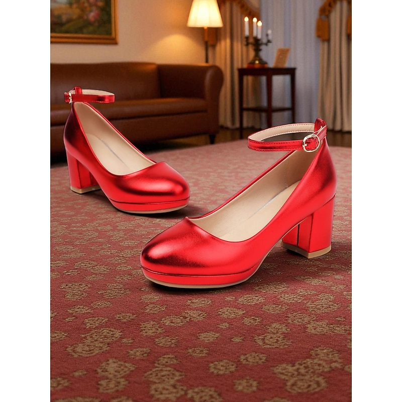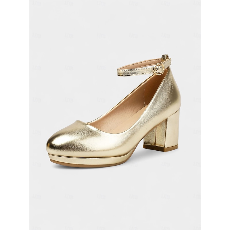 More information about Women's 1980s Gold Platform Block Heel Pumps - Shiny Round Toe Ankle Strap Retro Party Shoes for Disco, Dance, and Cocktail Events