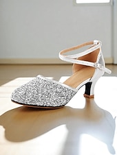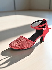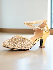 More information about Women's Gold Glitter Latin Dance Shoes with Ankle Strap - Professional Ballroom Performance Heels for Ladies