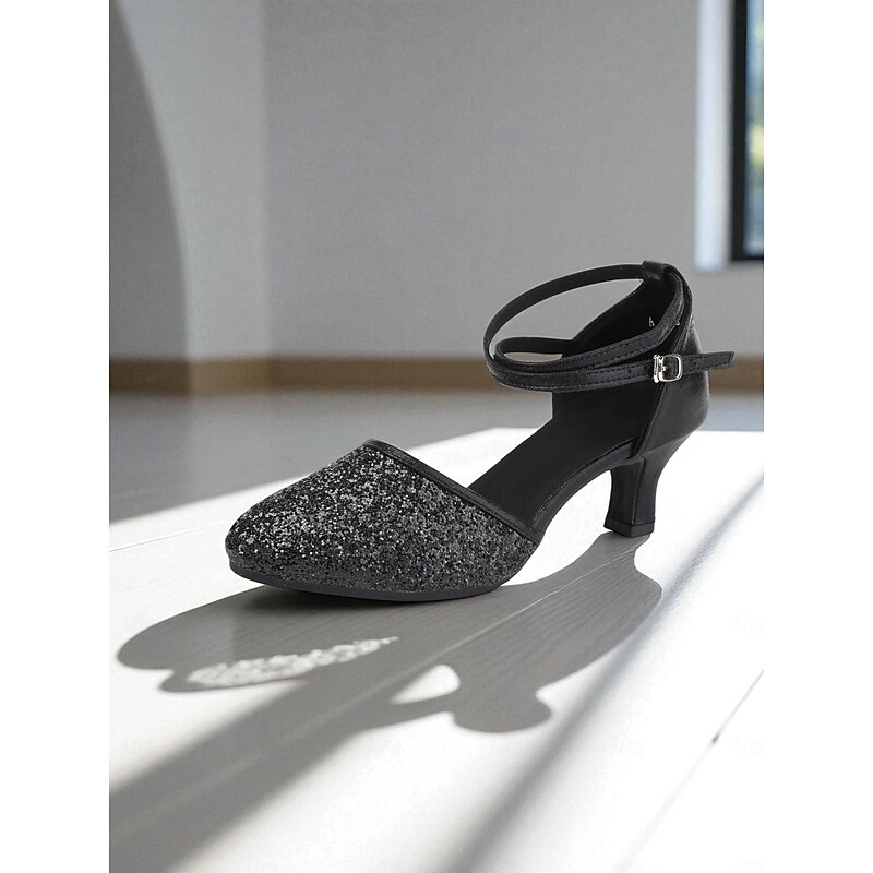 HOT ! Women's Gold Glitter Latin Dance Shoes with Ankle Strap - Professional Ballroom Performance Heels for Ladies