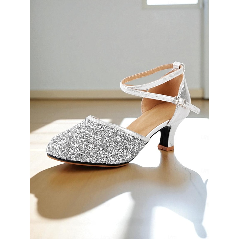 Women's Gold Glitter Latin Dance Shoes with Ankle Strap - Professional Ballroom Performance Heels for Ladies 17