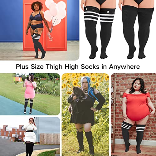 Fabric type: Zando plus size thigh high socks are comfortable soft, lightweight and breathable.Care instructions: Machine WashFit type: RegularPattern: Striped【Designed for American Plus Sizes】Say goodbye to Asian sizes over the knee socks,Zando plus size thigh high socks are designed for American girls and Zando high socks plus size are everything you and those stunning legs ever needed! Heel to Top Length is about 35.4'', and the stretched length is up to amazing 42'', the stretched width is up to amazing 39. Recommended: Designed for upper thighs that measure 25 inches or larger, if not these large stockings will be too big for you.【Extra Free Thigh Belt & Adjustable】Say goodbye to annoying body adhesives and the embarrassment of sagging or rolling off. We will take a free pair thigh straps with adjustable silver buckles(Yes! They are free and even adjust up to 44.5'' around). you can use this straps to secure our thigh high socks to any length you want. If you don't want people to see the Thigh Belt, you can also hide it, which is a must-have fashion item for big girls that you will definitely be satisfied with.【Soft& Breathable High Elastic 】These soft plus size long socks are made of super stretchy, breathable fabric.It can tight fit with calf and thigh and also make your legs look longer without suffocating your thighs. The good elasticity makes the cotton socks stay up nonslip and stay put. you can wear them to do sports, dance, or sit for a long time at ease without feeling tight or uncomfortable.【Different Dressing Styles in Four Seasons】There are many ways to wear long thigh high socks! These socks will definitely add interest to any outfit, Wearing them scrunched down like cute leg warmers, or maybe folded over! Pair them with short shorts, Jeans or mini-skirts as casual clothing or wear them under thigh high boots or ankle boots during autumn or winter, and a variety of uniforms for party! You can also wear our socks for yoga, cosplay, pole dancing, and even as you hang out at home!【Irreplaceable Gift for Big Girls】When you wear clothes of various colors every time, Zando plus size knee high stockings will look better with, these chunky knitted leg warmers radiate confidence with and sexy, every plus-size girl deserves them. they also make a thoughtful gift for your friends, sisters, partners and colleagues. It will become the warmth of winter, the thoughtfulness of spring, and the romance of autumn. Trust me, this will be a practical and heartwarming gift. Perfect for everyday use. superior materials and excellent craftsmanship ensure long-lasting durability.
