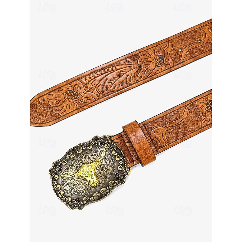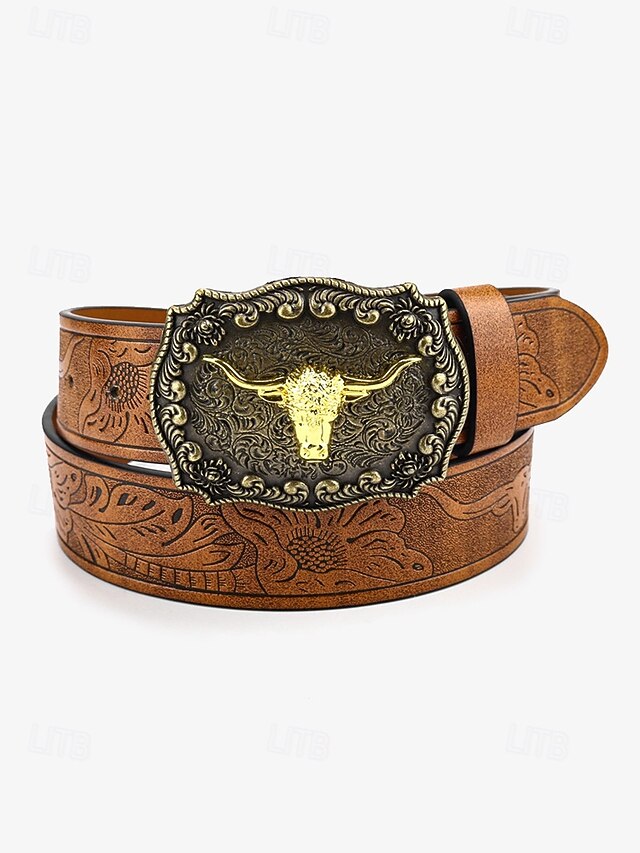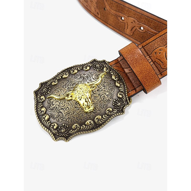 $19.99 - Men's Western Leather Belt with Gold Longhorn Buckle - Vintage Engraved Cowboy Belt for Casual and Rodeo Style 2025. Shop for cheap Accessories For Men online? Buy at lightinthebox.com on sale today!