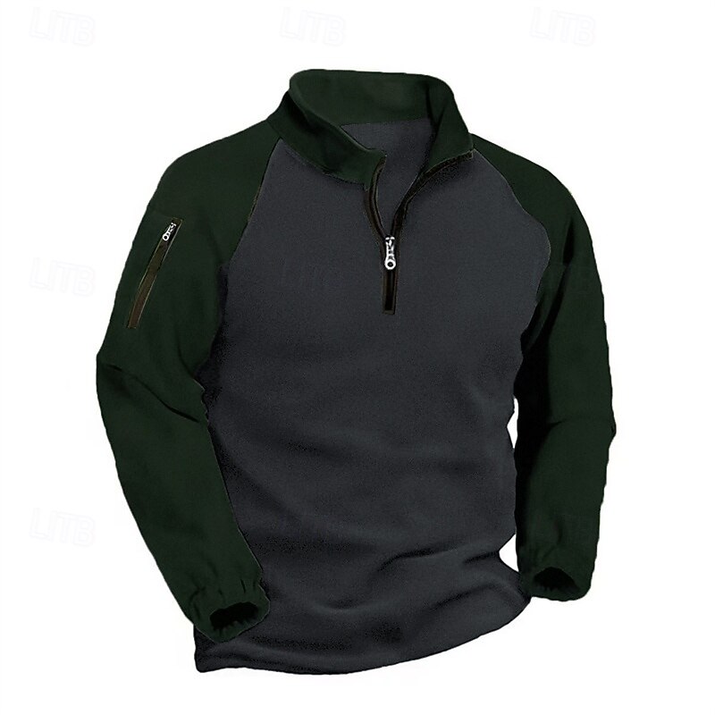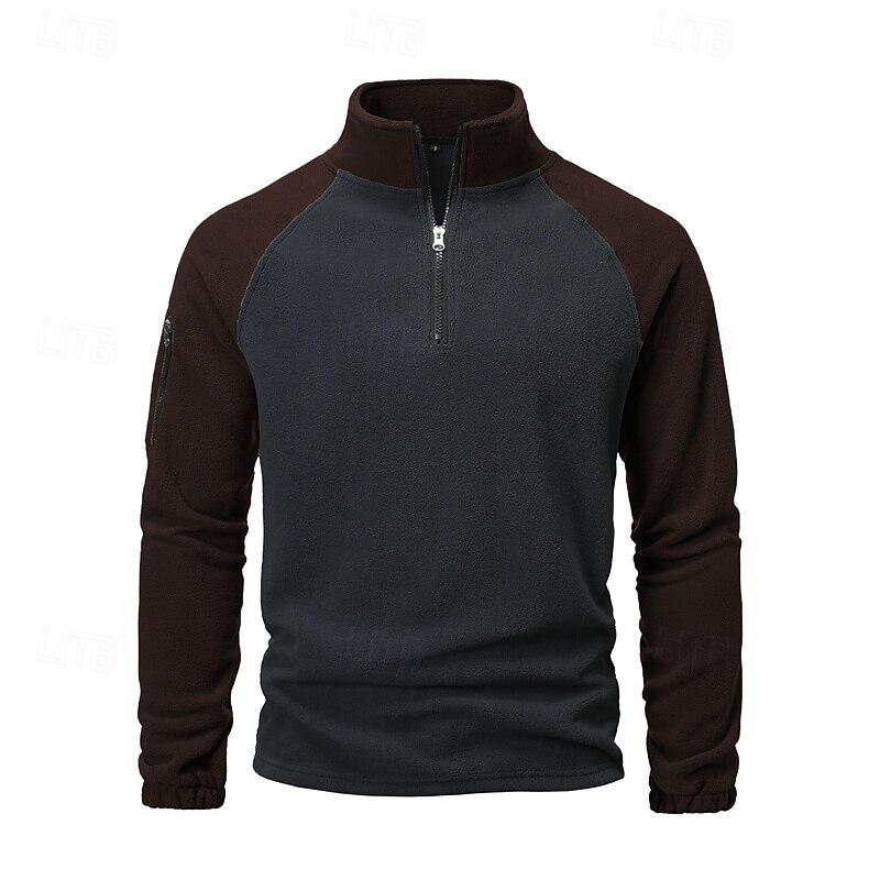 More information about Men's Sweatshirt Fleece Sweatshirt Quarter Zip Sweatshirt Black Army Green Navy Blue Coffee Half Zip Color Block Patchwork Sports & Outdoor Daily Holiday Polyester Streetwear Basic Casual Fall Winter