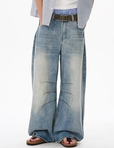 More information about Men Baggy Jeans Y2K Vintage Wide Leg Skater Jeans Loose Fite Denim Pants Trousers Streetwear