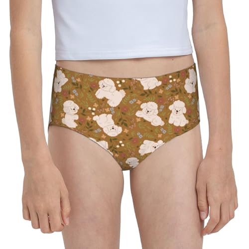Cute Poodles And Flowers Girls' Underwear Soft Cotton Little Girls Panties Comfort Briefs 6