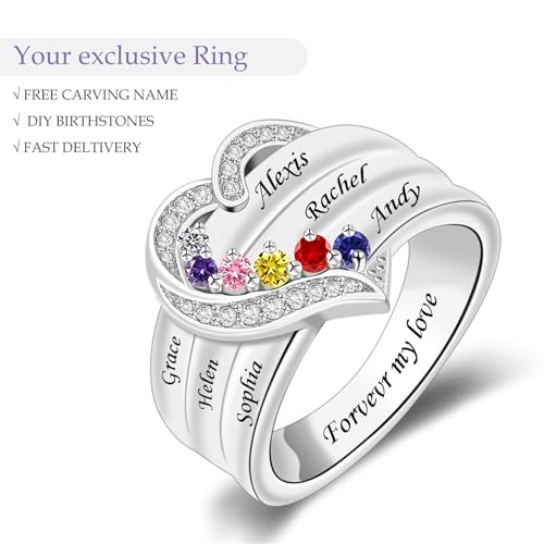Personalized Birthstones Rings for Women Heart Mother Ring with Simulated Birthstones Custom Stones Ring Jewelry for Her Engagement Name Promise Ring for Mom Wife Grandmother 4