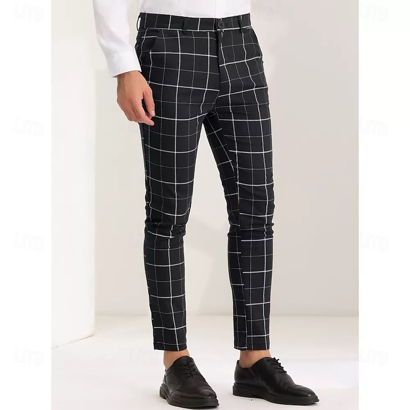 More information about Men's Geometric Plaid Dress Pants Mid Waist Casual Outdoor Vacation Home Zipper Pocket Summer Spring Fall 3D Print Black Red Orange