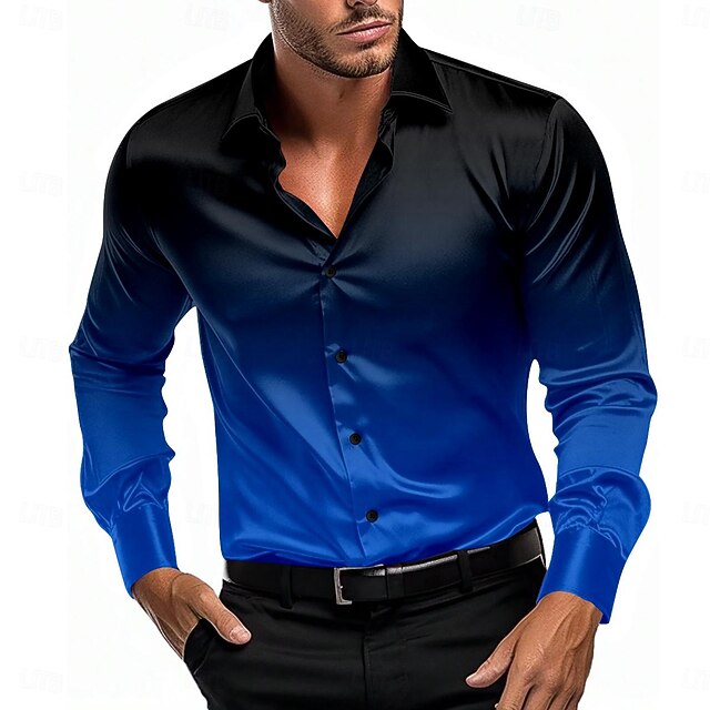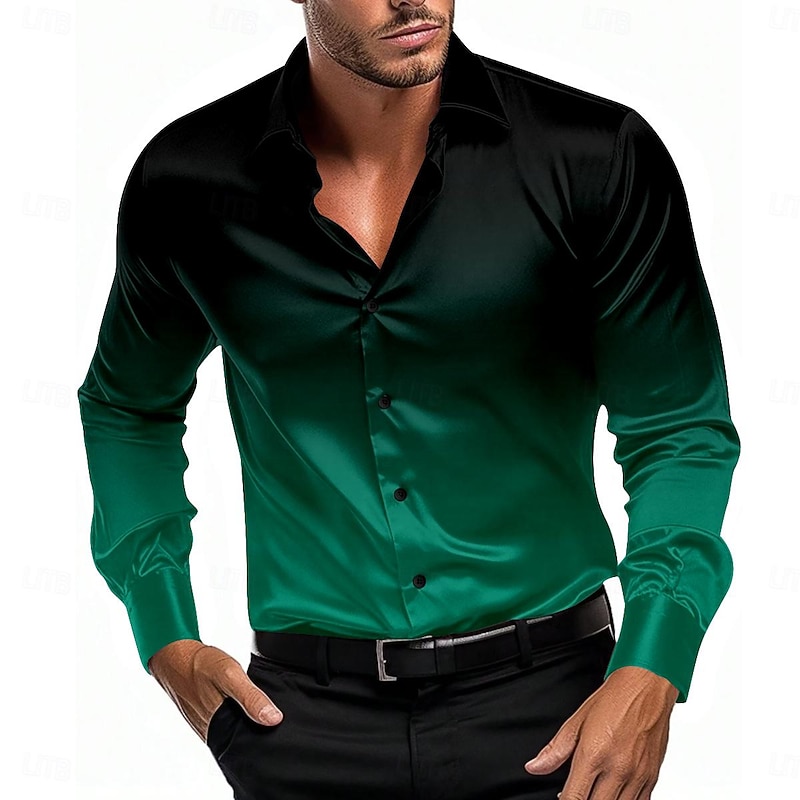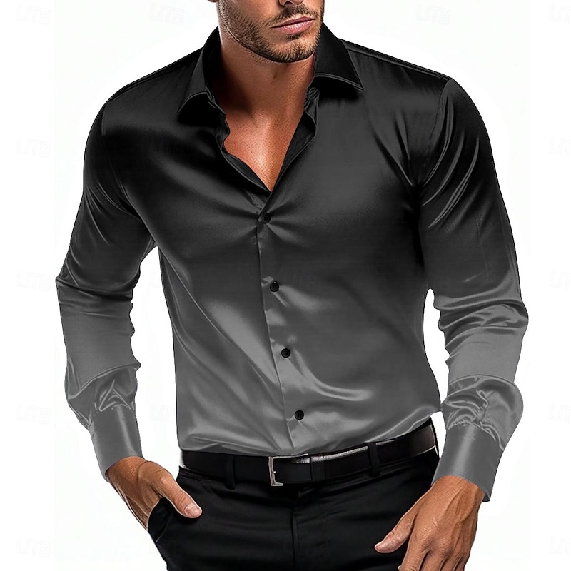 More information about Men's Satin Shirt Dress Shirt Button Up Shirt Formal Vacation Pink Blue Orange Green Long Sleeve Turndown Summer Spring Clothing Apparel Buttons