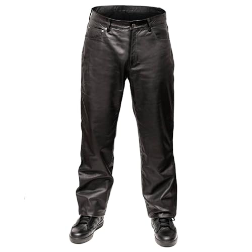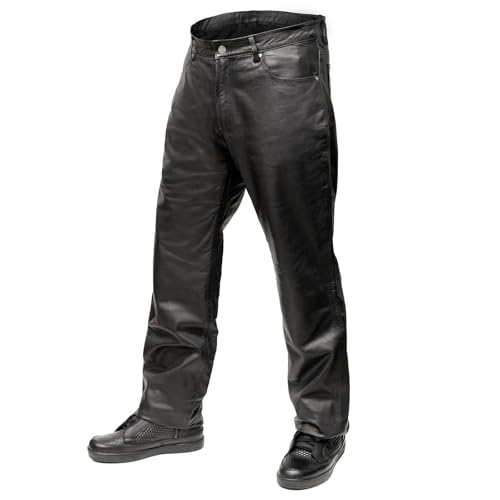 • ✅ Classic Jean Style Pockets: Our Men's Leather Pants Offer Practical Storage Solutions Pockets, with the classic five pocket design including a front coin pocket complete the look. Whether you are riding our heading out on the town these leather pants are the complete package