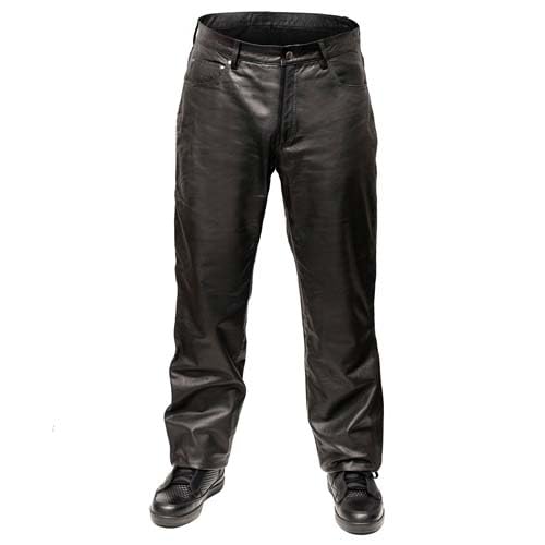 MILWAUKEE MOTORCYCLE CLOTHING CO. Men’s Branson Black Premium Leather Biker Lined Pants – 5-Pocket MMC50000 1