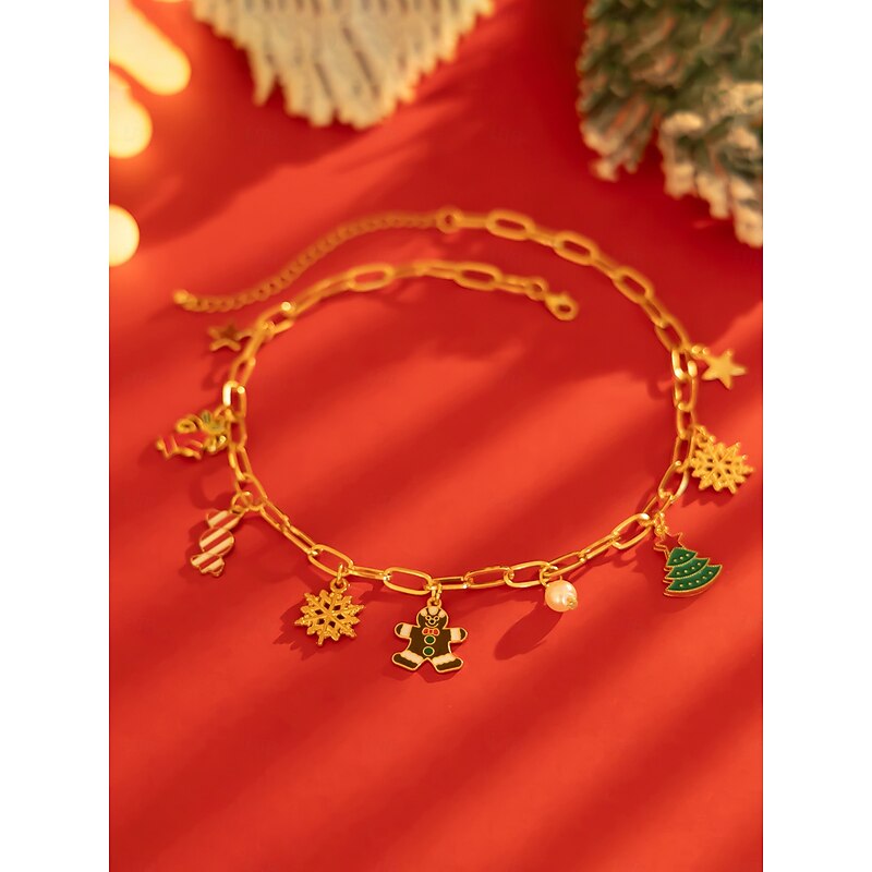 $11.99 - Women's Christmas Gingerbread and Snowflake Charm Necklace and Earrings and Bracelet with Gold Chain - Cute Holiday Jewelry for Christmas Celebrations 2025. Shop for cheap Women's Necklace online? Buy at lightinthebox.com on sale today!