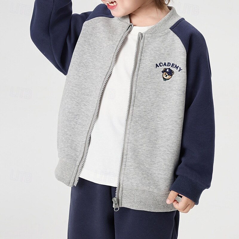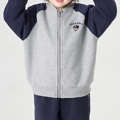 More information about Kids Unisex Baseball Jackets Outerwear Color Block Long Sleeve Comfort Buttons Soft Coat Outdoor Fashion Daily Blue Beige Gray Spring Fall 4 years+
