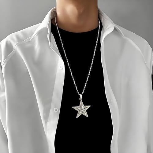 More information about Silver Star Necklace Star Pendant Necklace Fashionable And Avant Garde Cubic Zirconia Rotating Stars Necklaces Pentagram Necklace Can Be Worn By Both Men And Women Jewelry