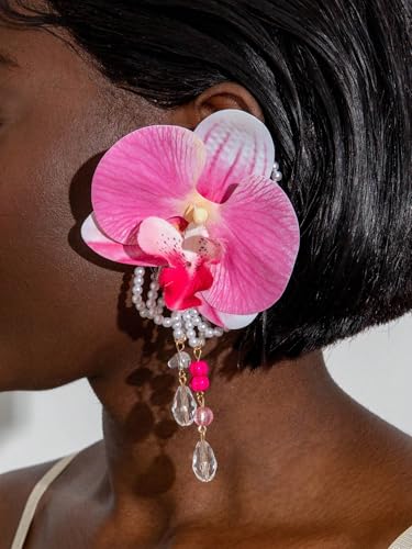 More information about Orchid Earrings For Women, Bohemian Pink Large Butterfly Flower Tassel Artificial Pearl Petal Dangle Earrings Elegant Beach Party Gift Jewelry