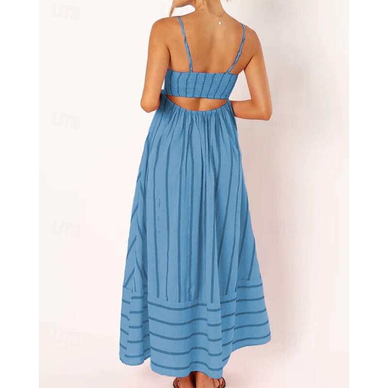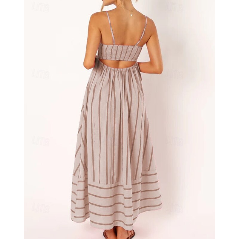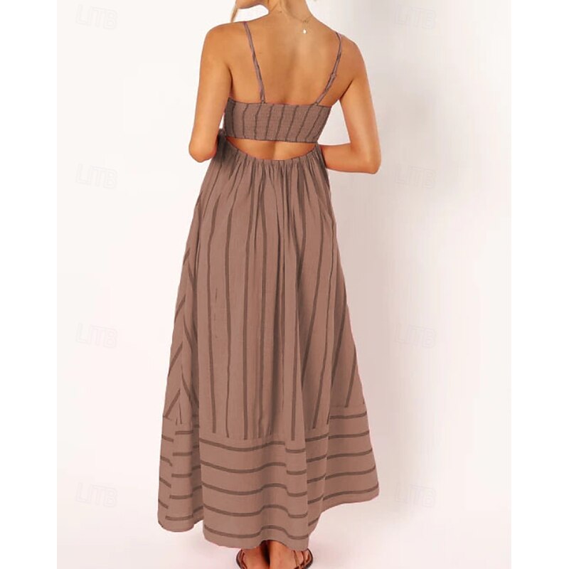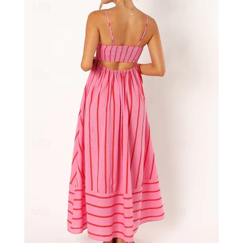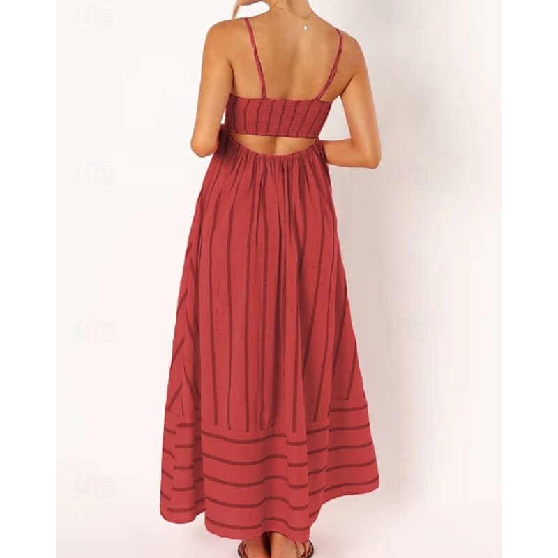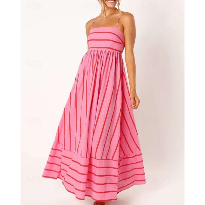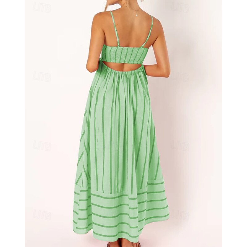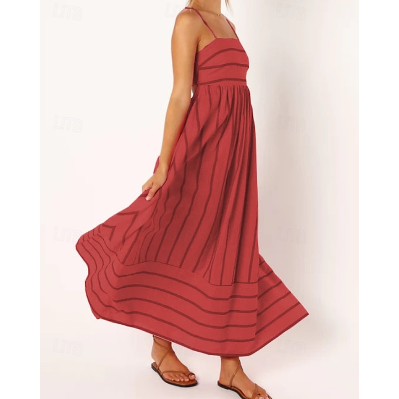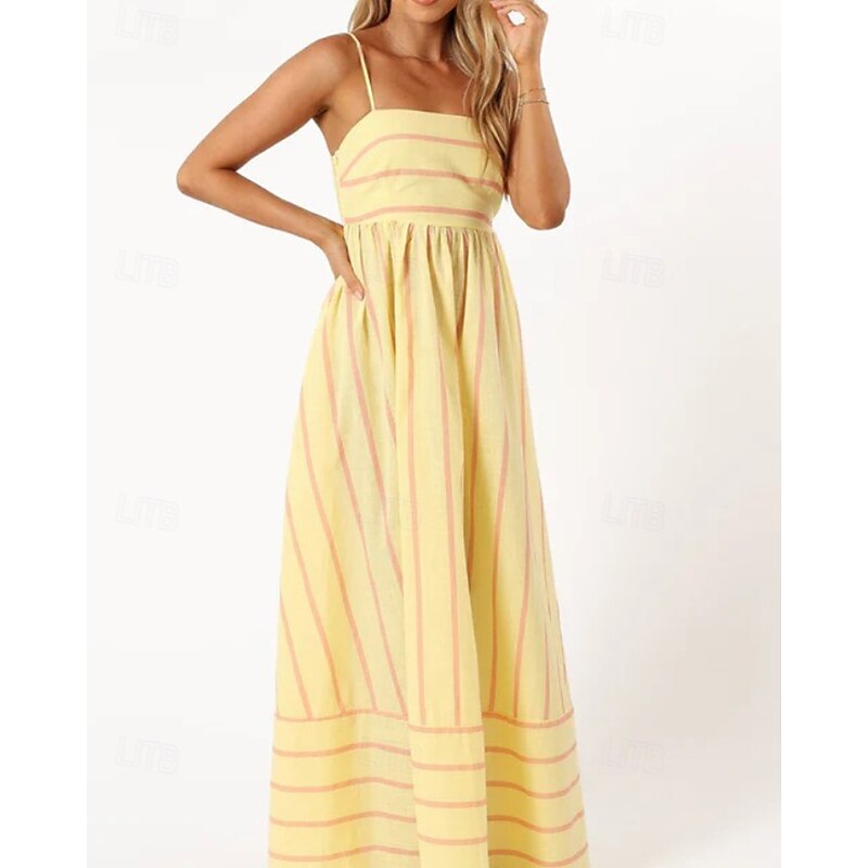 More information about Women's Midi Dress Slip Dress Classic Modern Outdoor Vacation Holiday Regular Fit Striped Sleeveless Spaghetti Strap Yellow Light Green Wine Red Summer
