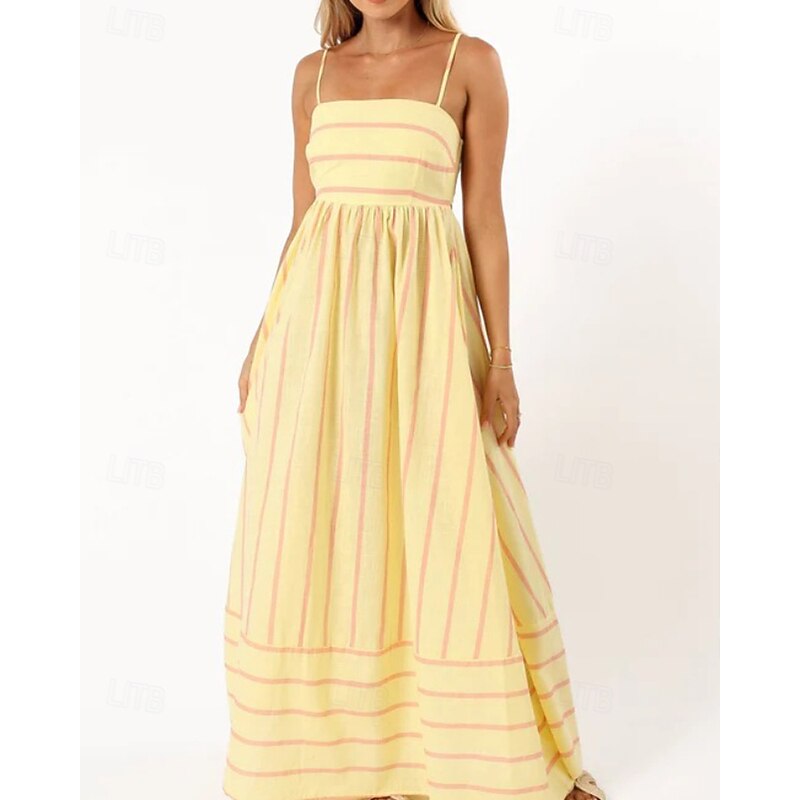 HOT ! Women's Midi Dress Slip Dress Classic Modern Outdoor Vacation Holiday Regular Fit Striped Sleeveless Spaghetti Strap Yellow Light Green Wine Red Summer