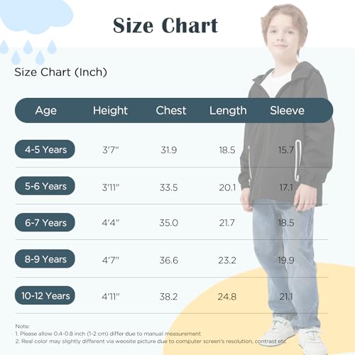 Kids Rain Jacket with Air Vents Mesh Lined, Hooded Raincoats with Extended Brim for Boys Girls 7