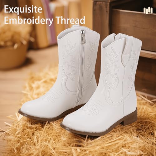 Hehainom Girls Cowboy Cowgirl Boots Boys Kids Toddler Western Mid Calf Zipper Riding Boots for Little Kid Big Kid 2