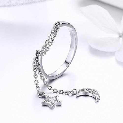 Kokoma Fashion CZ Moon Star Eternity Promise Ring Sterling Silver Adjustable Crystal Tassel Chain Wedding Statement Rings Finger Tail Band Cute Jewelry Gifts 6