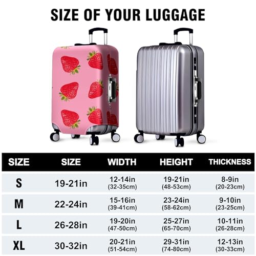Travel Luggage Cover Suitcase Protector Scratch-Resistant Fit Not Included Suitcase Cute Strawberry Background L-26-28in 7