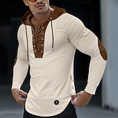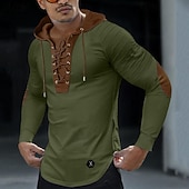 More information about Men's T Shirt Tee Top Long Sleeve Shirt Long Sleeve Hooded Spring & Fall Color Block Slim Pleated Fashion Designer Basic Lace up Patchwork Vacation Street Going out Black Green Khaki Top Tee for Men