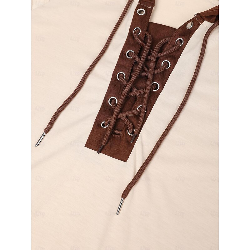 Men's T Shirt Tee Top Long Sleeve Shirt Long Sleeve Hooded Spring &  Fall Color Block Slim Pleated Fashion Designer Basic Lace up Patchwork Vacation Street Going out Black Green Khaki Top Tee for Men 8