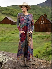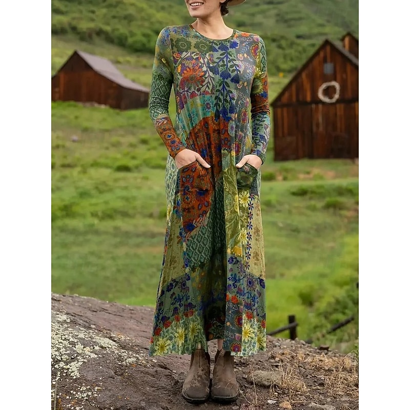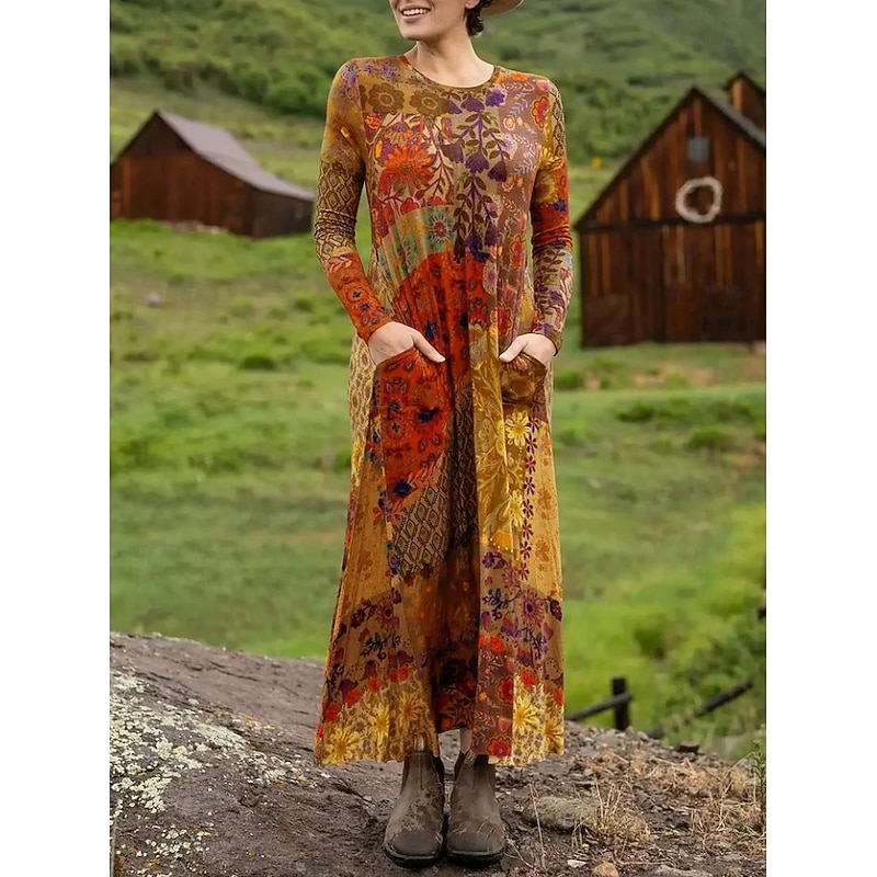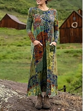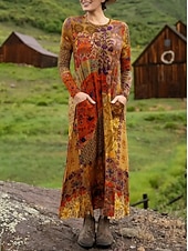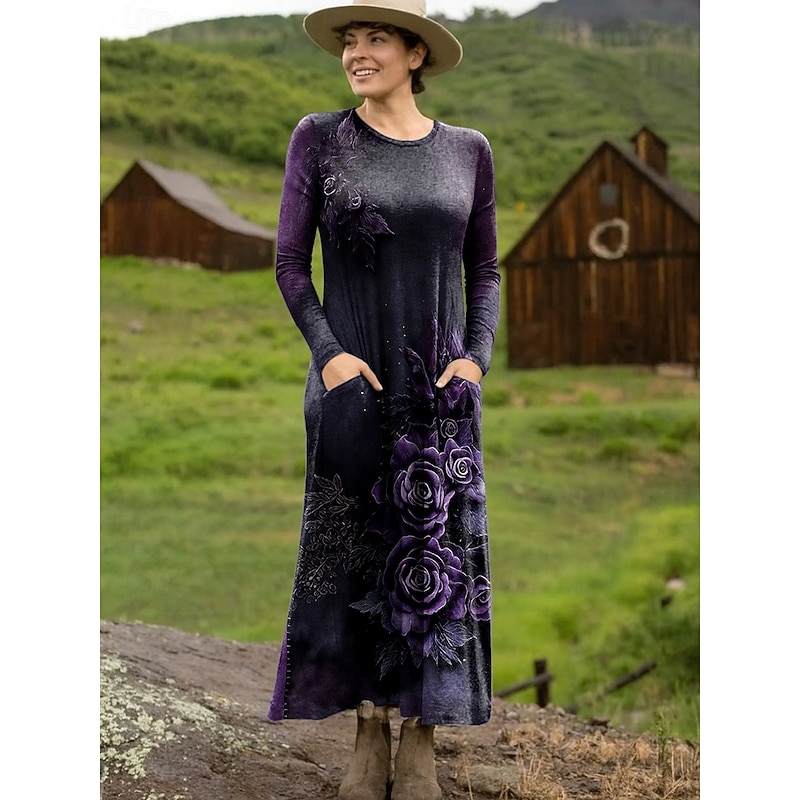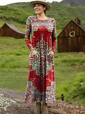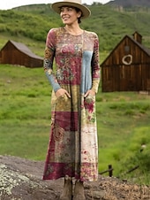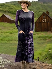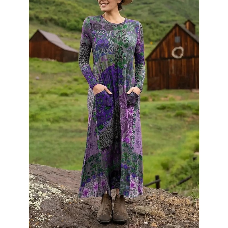 More information about Women's Maxi Dress Sheath Dress T Shirt Dress Tee Dress Vacation Casual Boho Holiday Date Regular Fit Floral Graphic Geometric Long Sleeve Crew Neck Deep Purple Pink Red Blue Spring Fall
