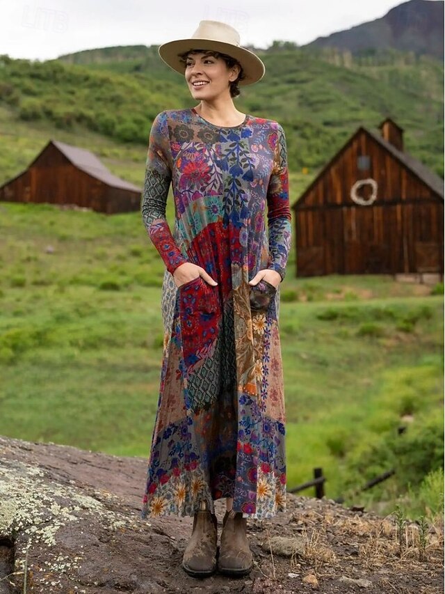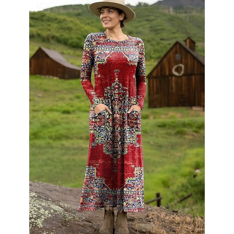 Women's Maxi Dress Sheath Dress T Shirt Dress Tee Dress Vacation Casual Boho Holiday Date Regular Fit Floral Graphic Geometric Long Sleeve Crew Neck Deep Purple Pink Red Blue Spring Fall 11