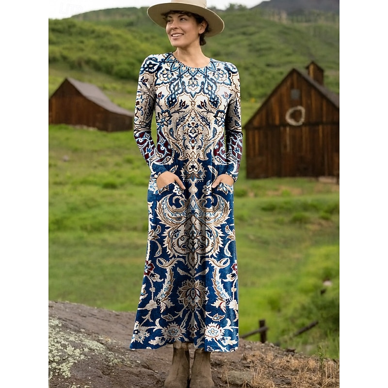 HOT ! Women's Maxi Dress Sheath Dress T Shirt Dress Tee Dress Vacation Casual Boho Holiday Date Regular Fit Floral Graphic Geometric Long Sleeve Crew Neck Deep Purple Pink Red Blue Spring Fall